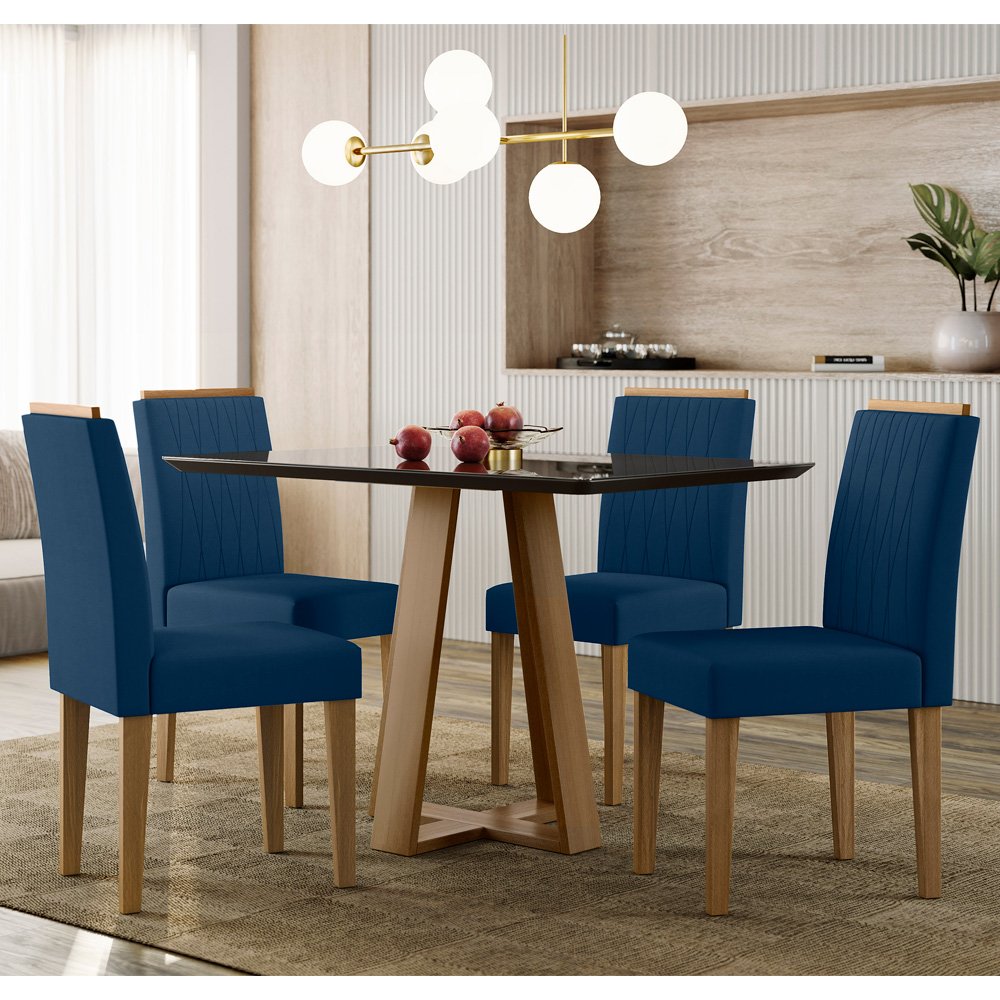Conjunto Mesa de Jantar 1,20m Lectus Tampo Mdf com Vidro e 4 Cadeiras Ana Amendoa/preto/ja04 - New C