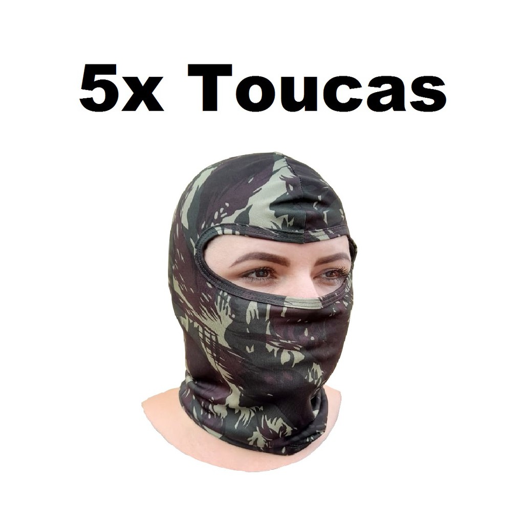 Kit 5 Touca Balaclava Ninja Mascara Camuflada - Tática Militar / Airsoft Paintball / Exercito Verde / Moto Motoboy Motqueiro