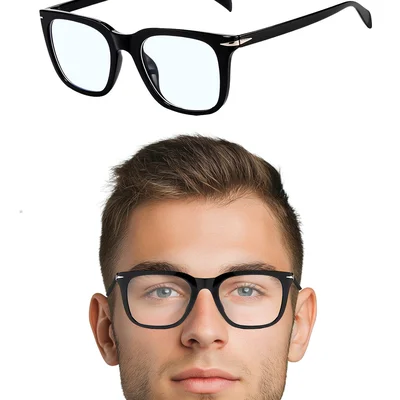 Óculos Masculino Quadrado Preto Armação sem Grau Proteção Anti Luz Azul para Computador Tv Celular