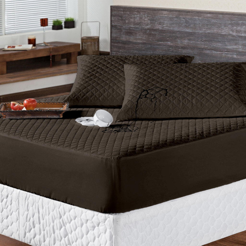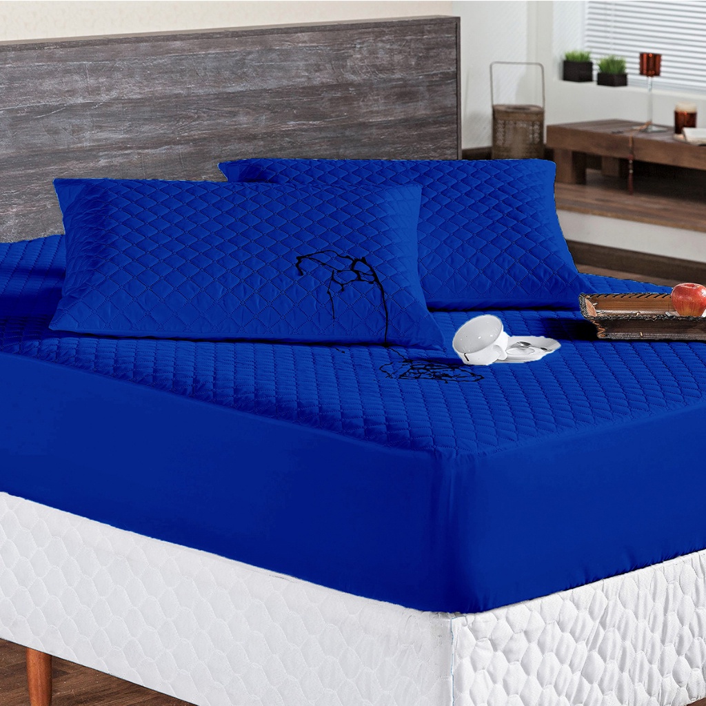 Kit Capa Protetor de Colchão Impermeável Matelado + Saia Box Matelado com Viés + Porta Travesseiro para Cama Box Solteiro, Casal, Queen, King Envio Imediato
