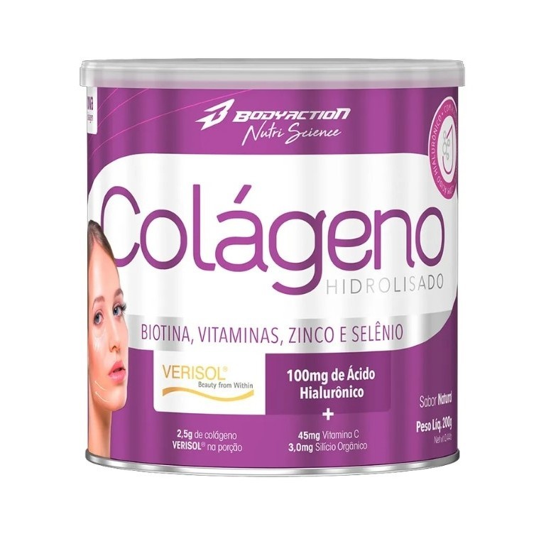 Colageno Verisol Hidrolisado c/ Acido Hialuronico Vitaminas e Minerais 200g - Body Action