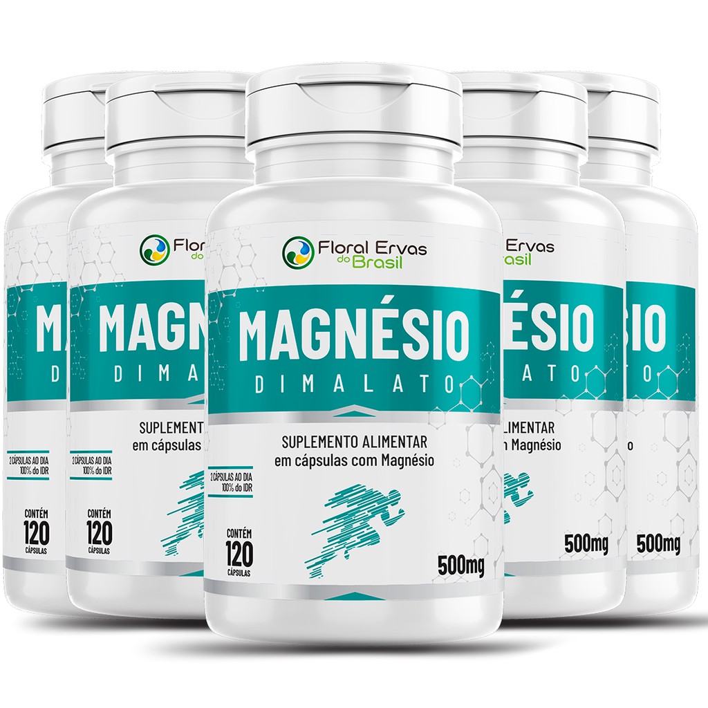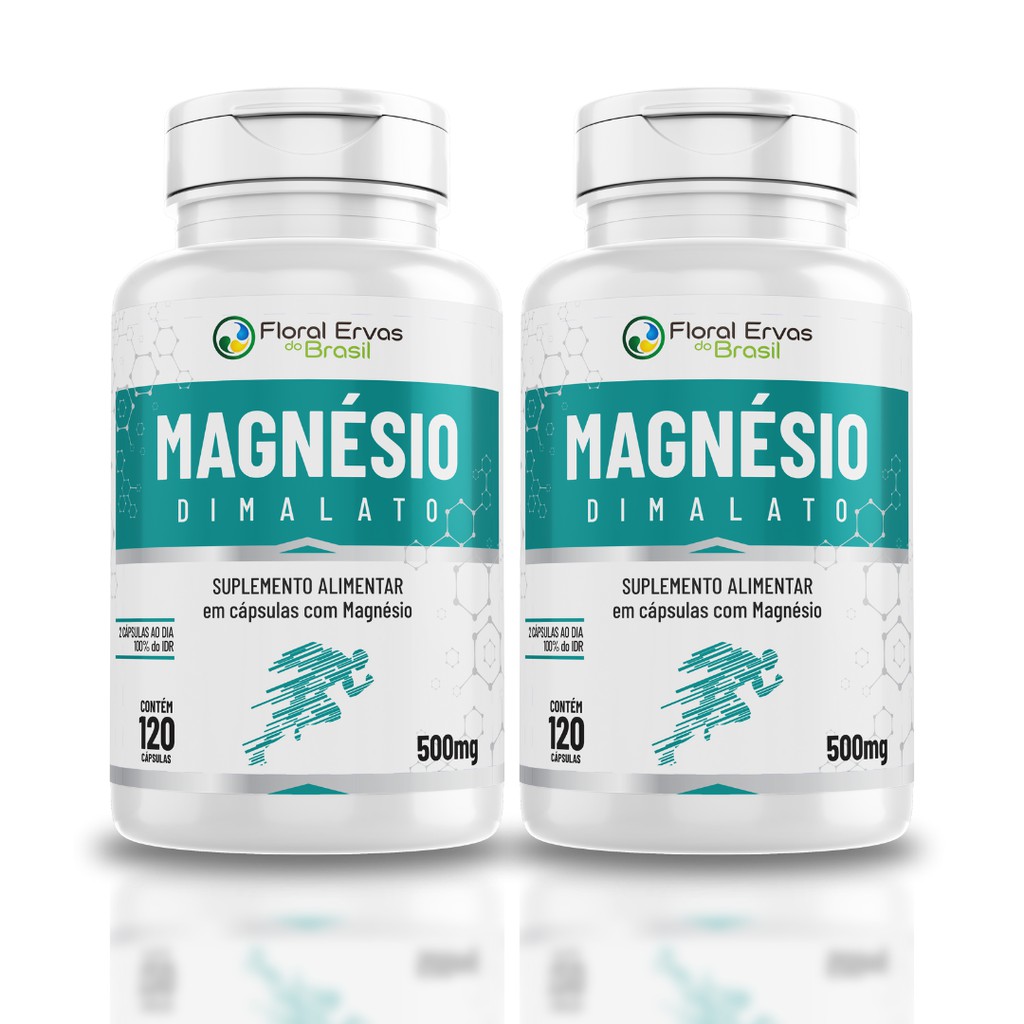 2 POTES MAGNÉSIO DIMALATO Puro 500mg Com 120 Cápsulas Concentrado - 100% Puro Floral Ervas do Brasil