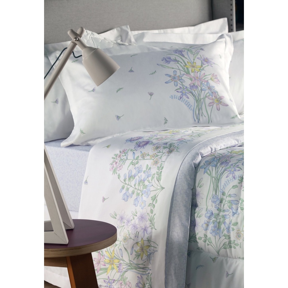Jogo de Cama Casal Microfibra Marcelino Têxtil 170 fios Premier Romantic Azul e Branco 4 Peças