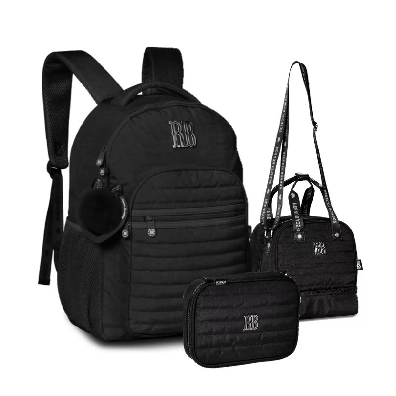 Kit Mochila Lancheira Estojo RB Rebecca Bonbon de Costas Lançamento Escolar Meninas Preta Preto