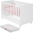 Berço Mini Cama Para Quarto De Bebê Com Rodízios E Grade Removível Com Colchão Infantil