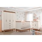 Quarto de Bebê Berço Americano e Cômoda Infantil Branco com Carvalho Retrô - Quater