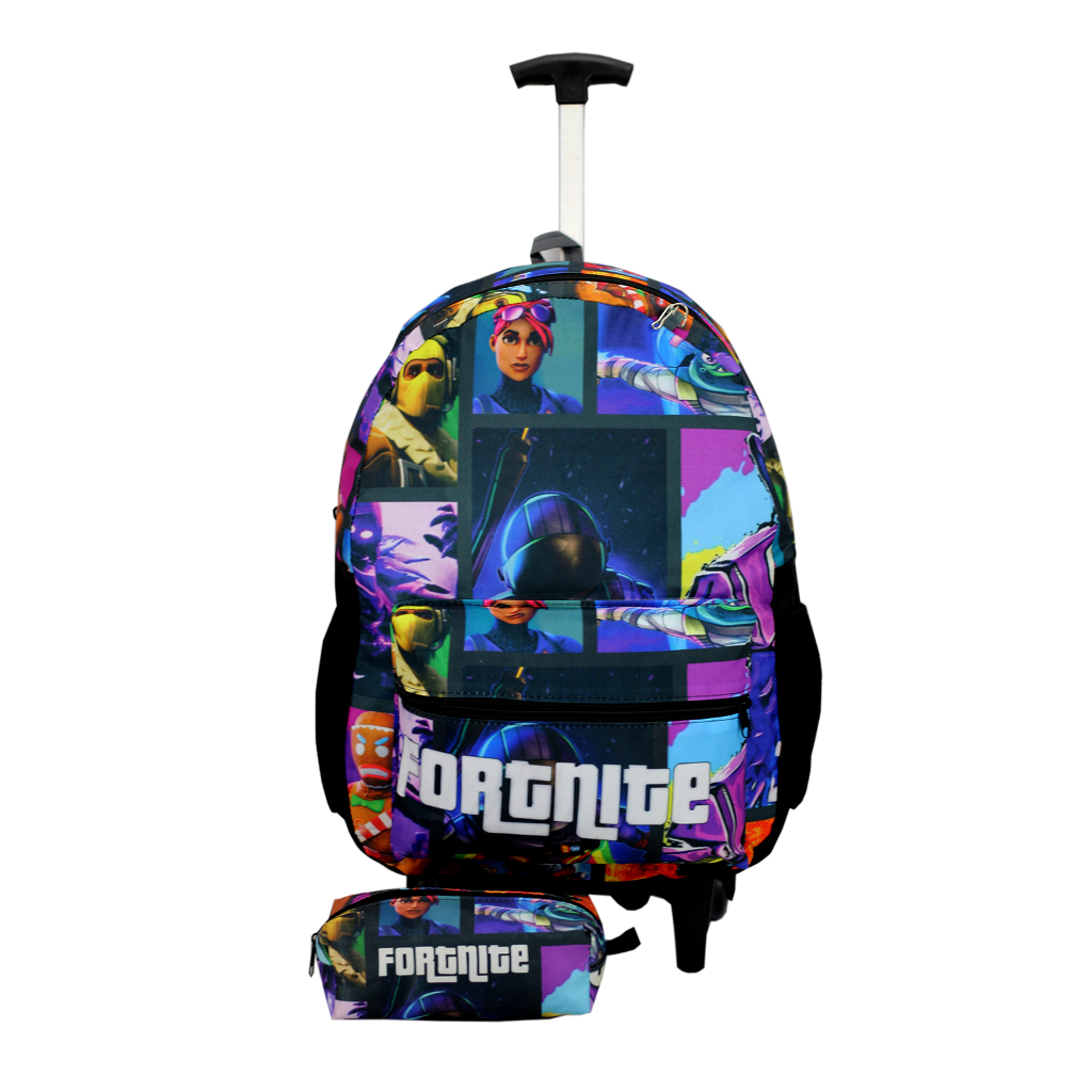 Mochila e Estojo Juvenil Escolar Fortnite Com Rodas
