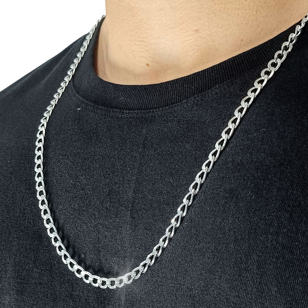 Corrente Prata 925 Masculina Fina 3mm Cordão Grumet 70cm Escama de peixe