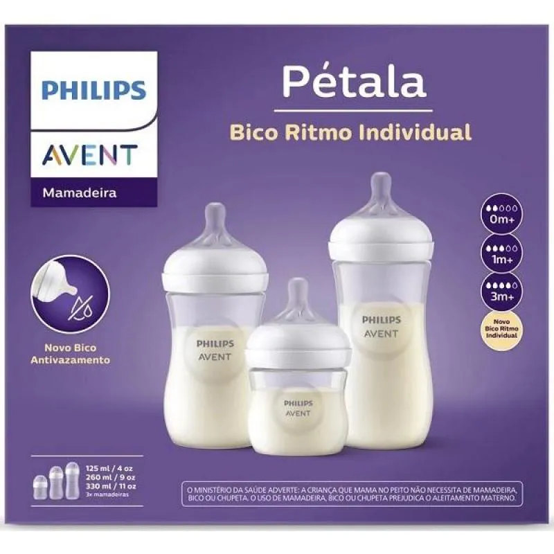 Kit 3 Mamadeiras Pétala Anticólica 125/260/330ml Philips Avent