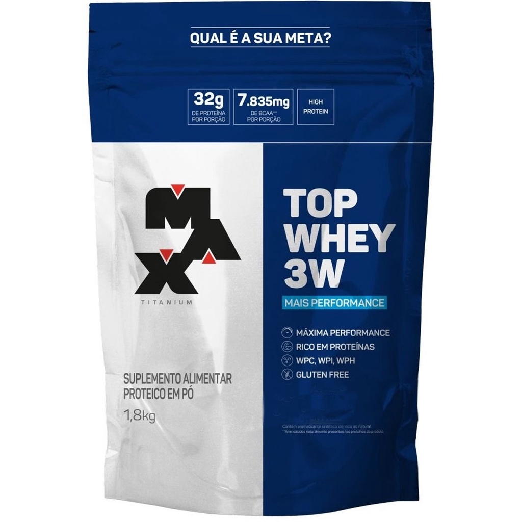 Whey Protein Isolado Concentr Max Titanium Top Whey 3w 1,8kg ganho de massa magra força resistencia