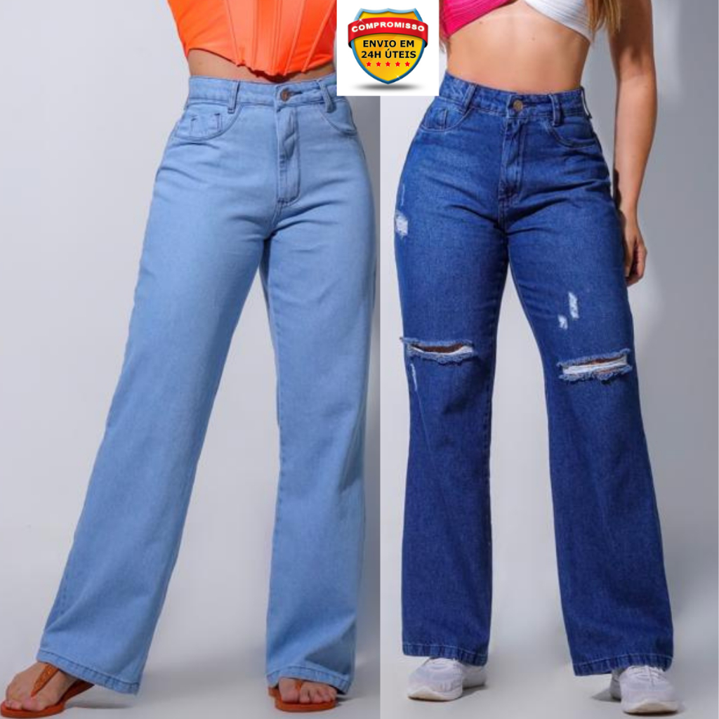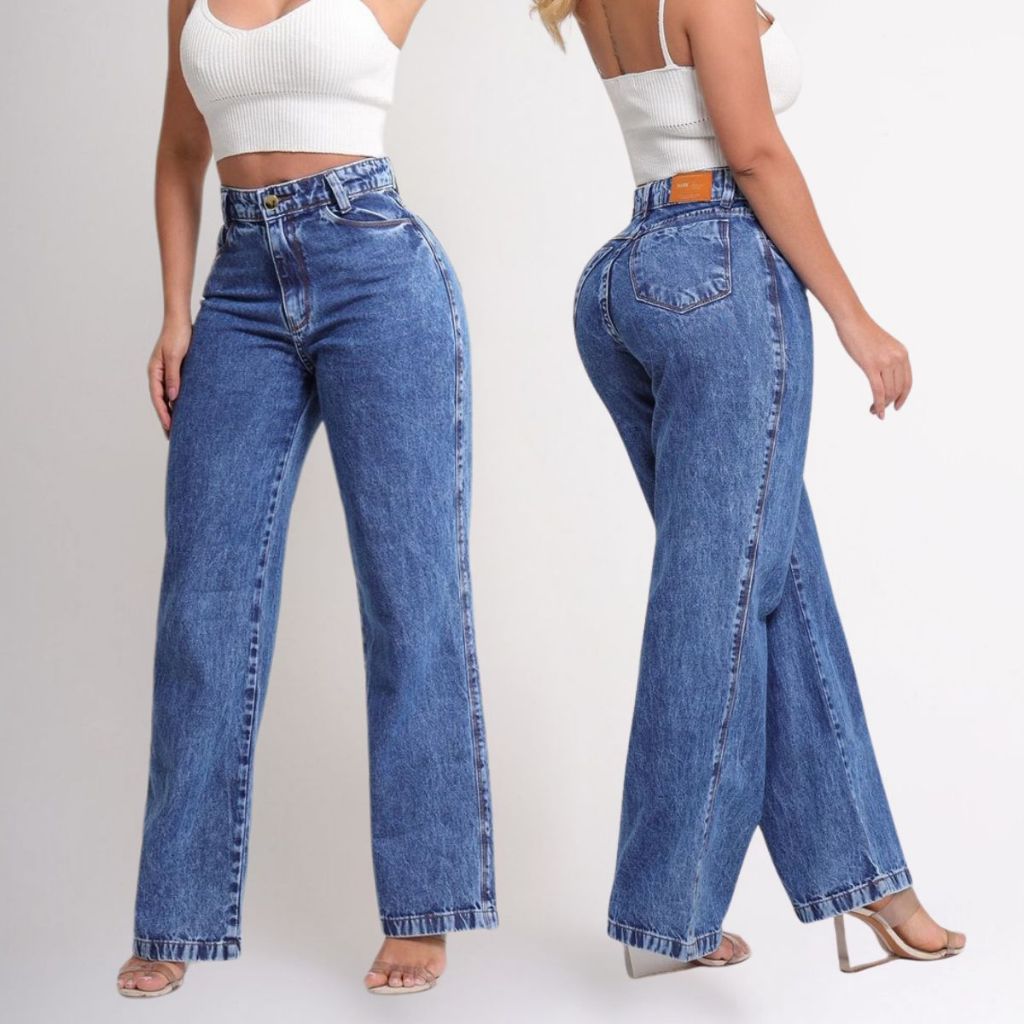 Calça Jeans Wide Leg Feminina Pantalona Cintura Cos Alto