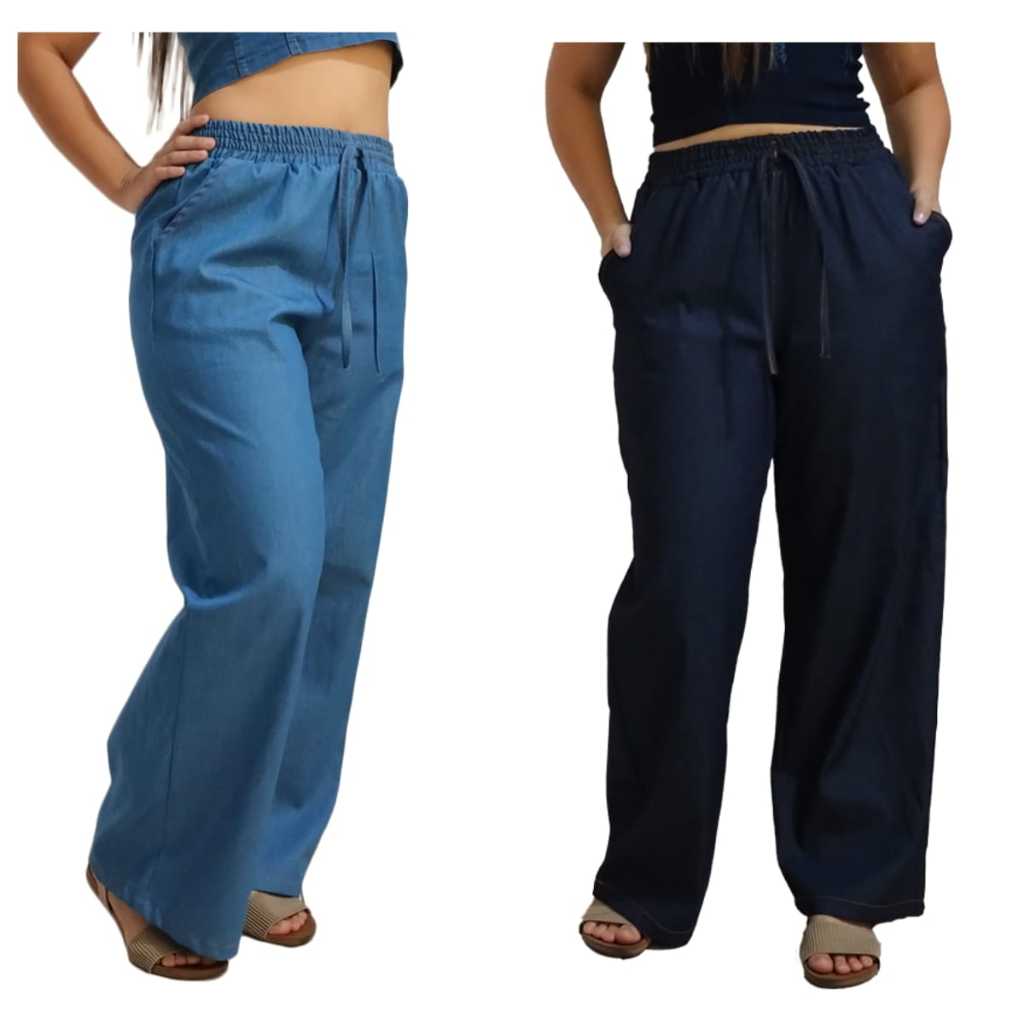 Calça Pantalona Feminina Wide Jeans Leg cintura Cos Alto Com Elastico confortável ótimo caimento veste também gestante