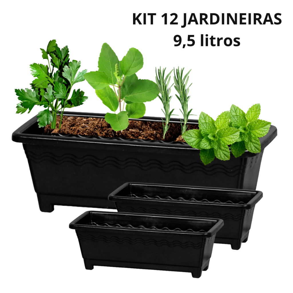 KIT 3 Vasos Floreira Jardineira Plástica 40 cm para Plantas Temperos Horta Jardim 6 litros