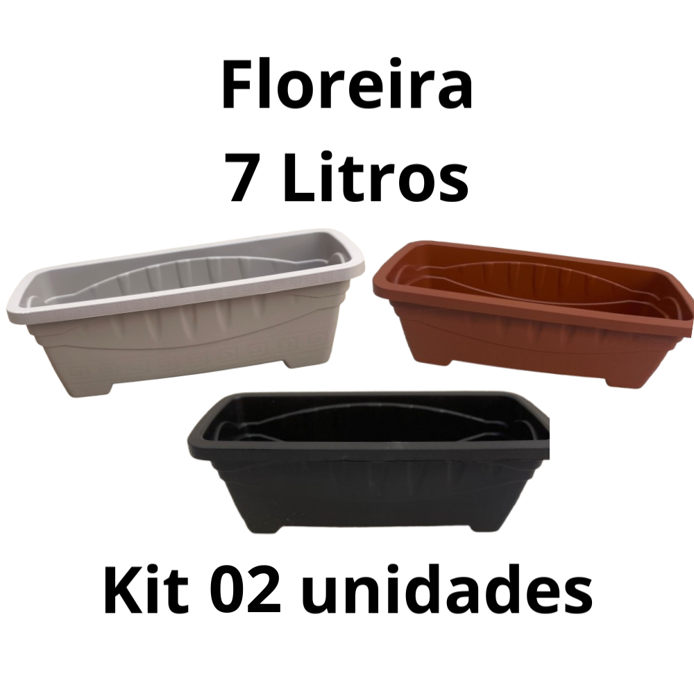Kit 2 Vasos floreira jardineira retangular para plantas 7L