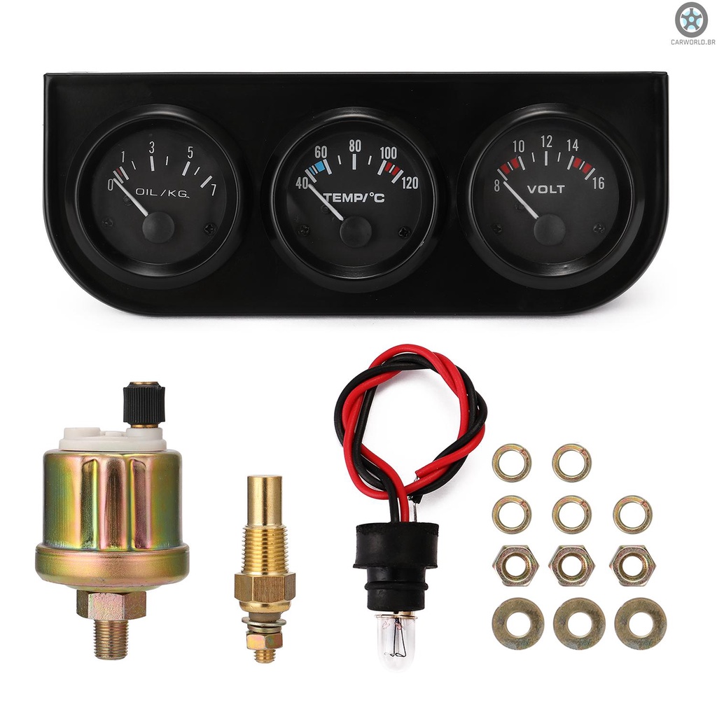 Cawdbr 52MM Medidor De Voltagem 3 Em 1 + Temperatura De Água + Kit De Óleo Ou