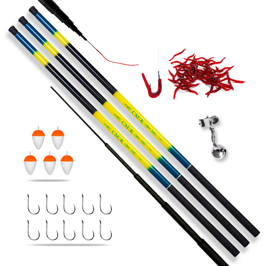 Vara de Pesca Telescópica 3,00M Fibra de Vidro Kit Pescaria Tilápia Lambari Piau entre outros + Boias + Minhocas + Anzóis + Sino