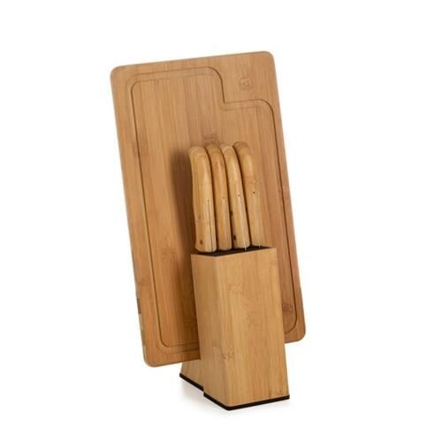 Conjunto de Facas para Cozinha Welf KT90163 Bambu e Inox 6 Peças com Cepo e Tábua Retangular