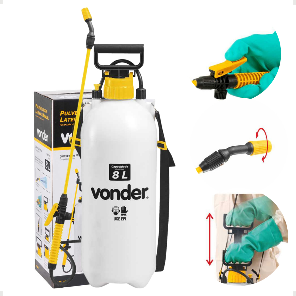 Pulverizador Borrifador Lateral 5 e 8 Litros Manual Tipo Bomba Com Compressão Prévia E Jato Regulável - Vonder