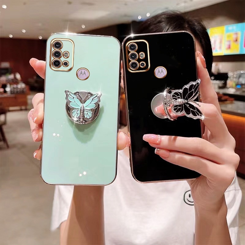 Motorola Moto G30 G20 G10 Suporte De Anel Borboleta Com Rotação 360 Graus , Capa Protetora De Borda Reta Eletroplatada De Alta Qualidade