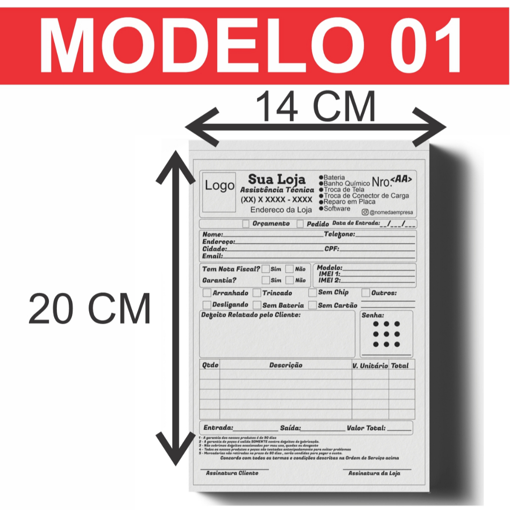 1 Bloco com 100 Fls para Ordem de Serviço Assistência Técnica para Celular - Modelo 2