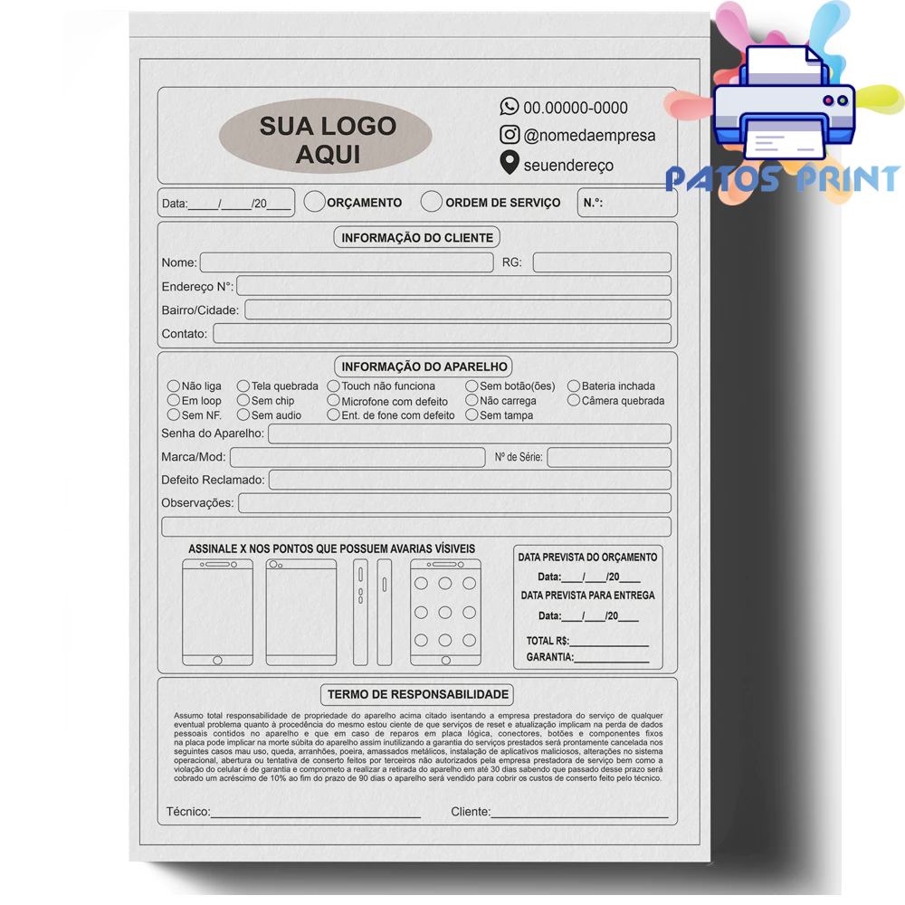 Bloco - Ordem de Serviço - Talão de Pedido - Personalizado - A4 - Assistência Técnica de Celulares