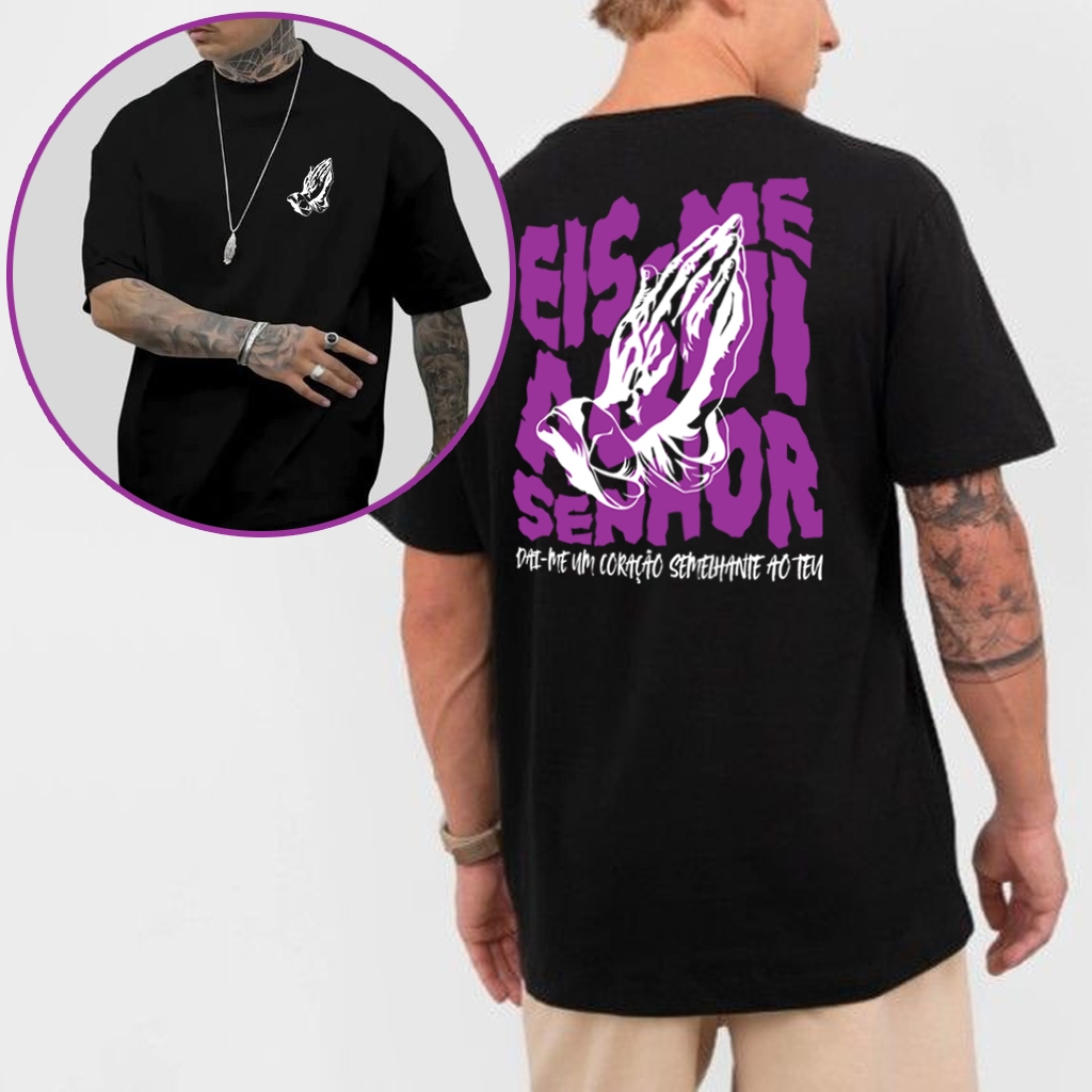 Camiseta Jesus Oversized Streetwear Masculina Feminina camisa 100% Algodão Eis-me aqui Senhor