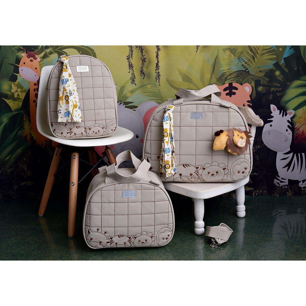 Kit Bolsa Maternidade Personalizado Safari com 4 peças mochila gg , Kadu Baby