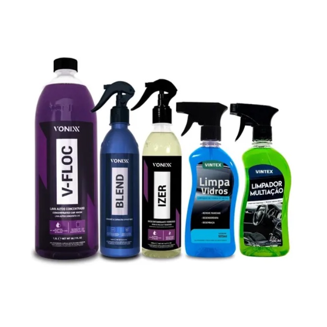 Kit C/5 Produtos Para Limpeza de Carros E Motos Vonixx