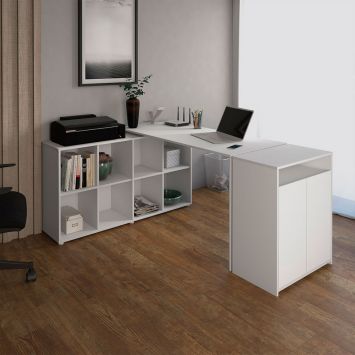 Conjunto de Mesa em L com Armário de Escritório 2 PT Nero Cool Branco