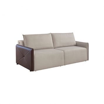 Sofá 3 Lugares Retrátil Urban com Entrada USB Linho Bege e Marrom 220 cm