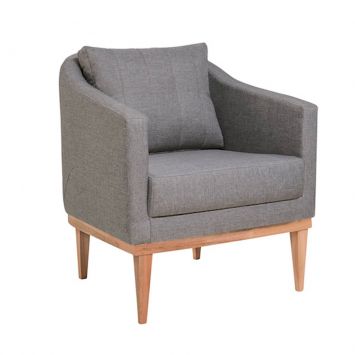 Poltrona Noronha Estofada Madeira Natural e Tecido Algodão Cinza - 71235