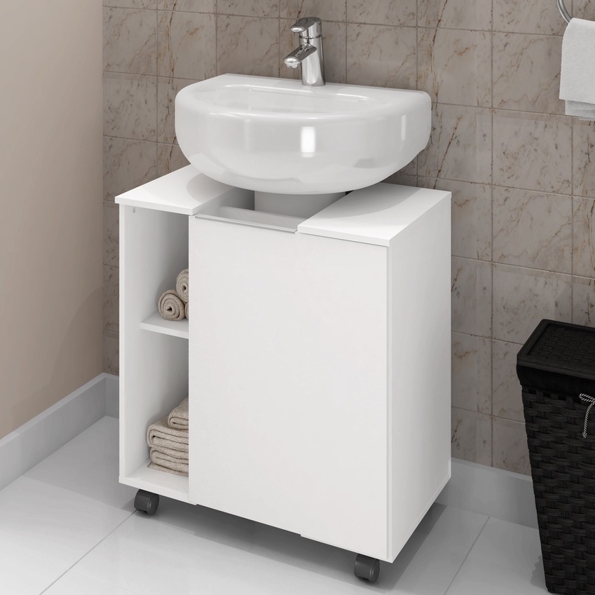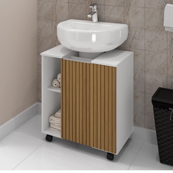 Gabinete Armário Banheiro Pia de Coluna Pequin Branco Ripa