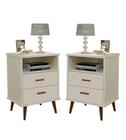 Kit Mesa De Cabeceira Retrô Lotus 2 Gavetas Off White N&E Loja Kit Criado Mudo Retrô Lotus 2 Gavetas