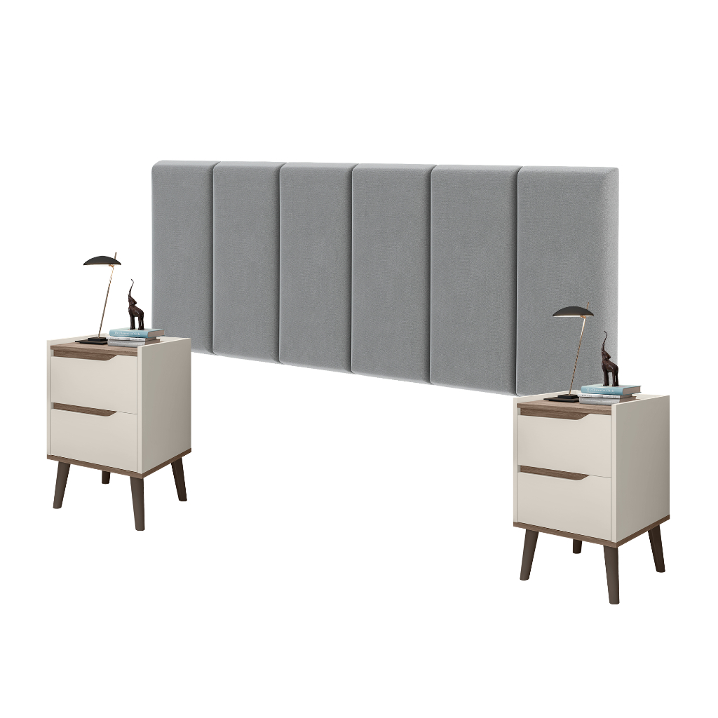 Kit Mesa de Cabeceira 2 Gavetas Off-White-Canela 2 Unidades Gabriela e Cabeceira Suspensa Estofada Para Cama Box Casal 1,40 Dubai