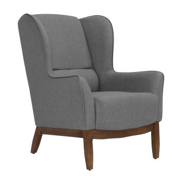 Poltrona Milena Linho Mescla Cinza e Madeira