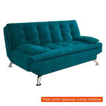 [OUTLET] Sofá-Cama Casal 3 Lugares Premium A2 Suede Azul Turquesa