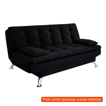 [OUTLET] Sofá-Cama Casal 3 Lugares Premium Suede Pés de Metal Preto