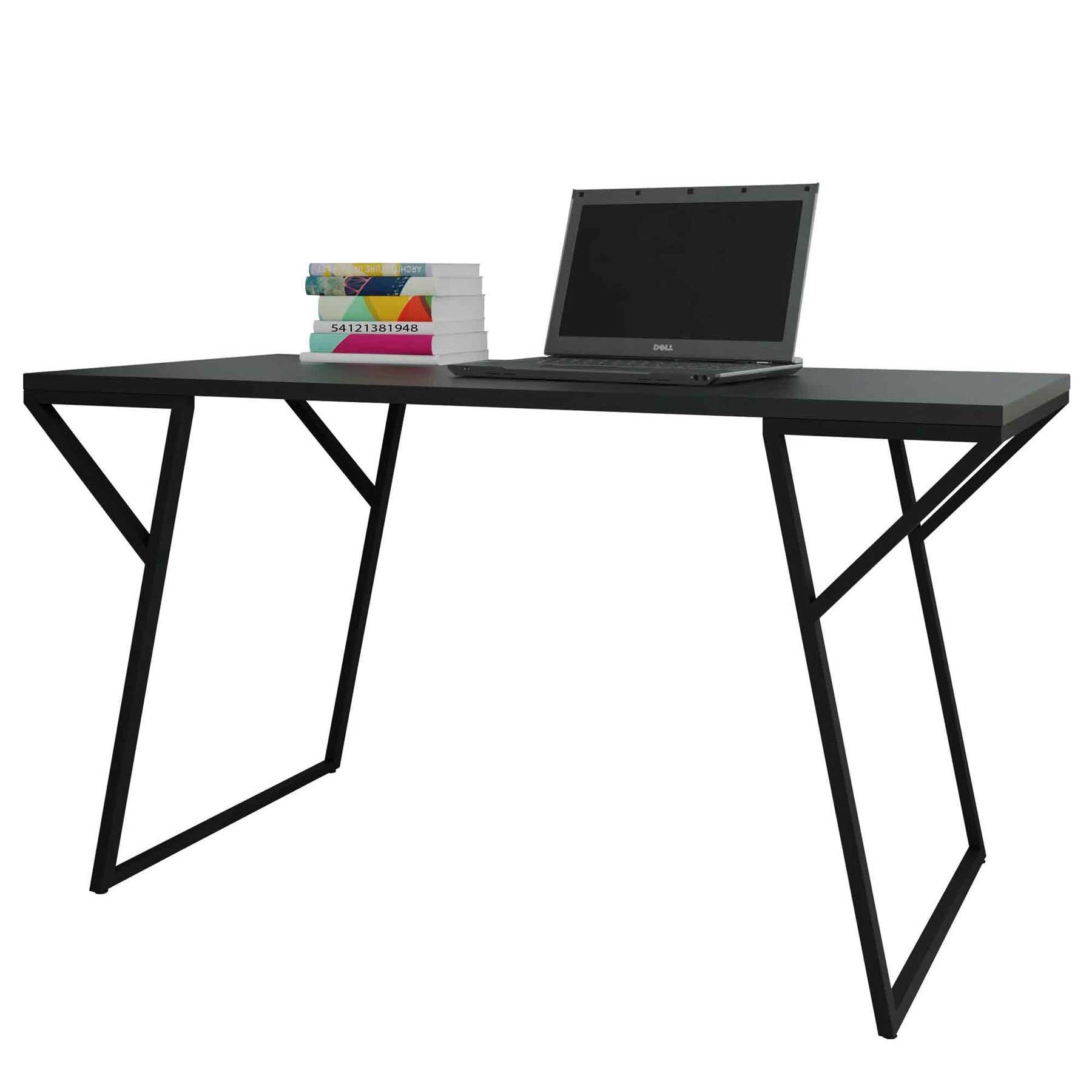 Escrivaninha Mesa Industrial Aço Carbono Base Preta Tampo Laca Vegas Preto