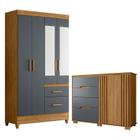 Guarda Roupa Solteiro Madri com espelho e Cômoda Texas Freijó Cinza Moval