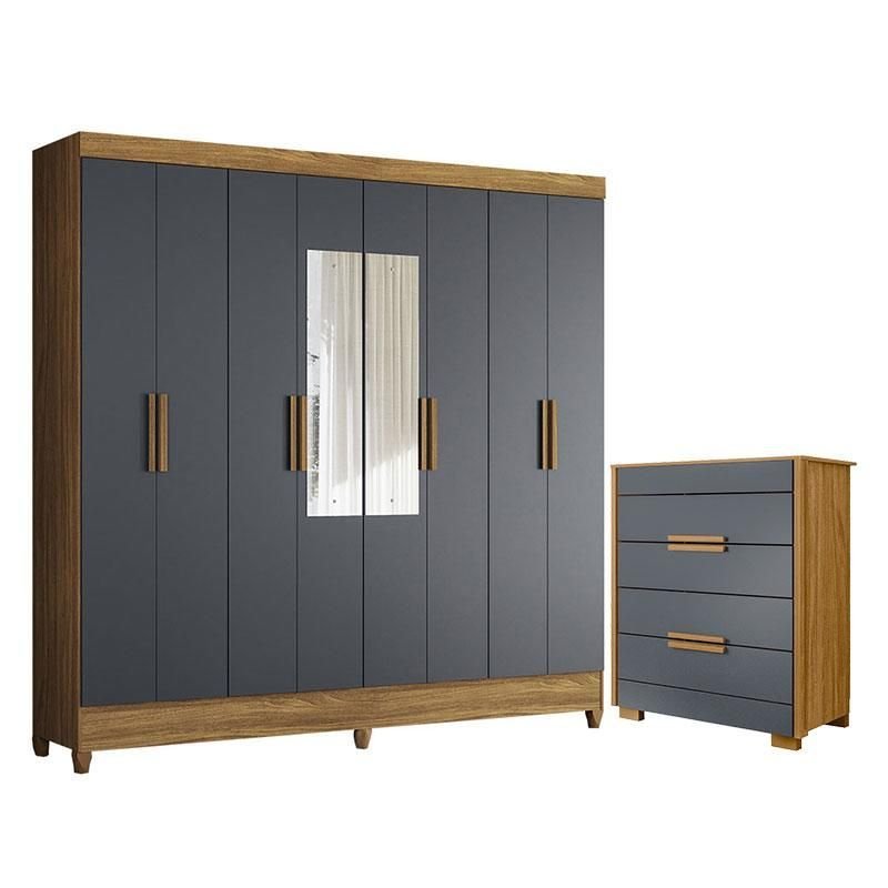 Guarda Roupa Casal Marajó com Espelho e Cômoda Dhara Freijó Cinza – Moval