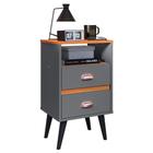 Mesa de Cabeceira Pequena Mesinha Com Gavetas Moderna Nicho Organizador Retrô Canto Quarto Classic New - Cinza/Cinamomo - RPM