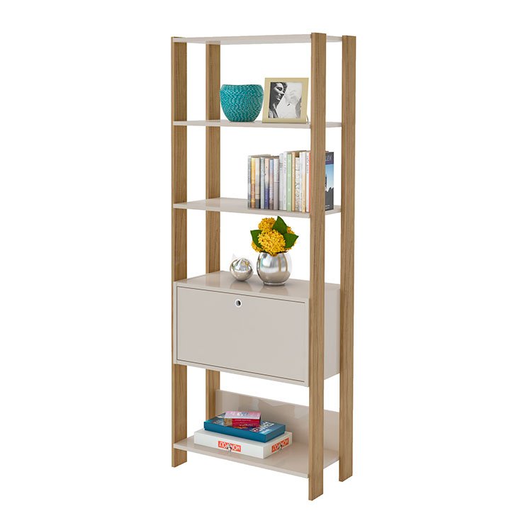 Estante para Livros Match 1 Porta 3 Prateleiras Off White/Carvalho - Artely