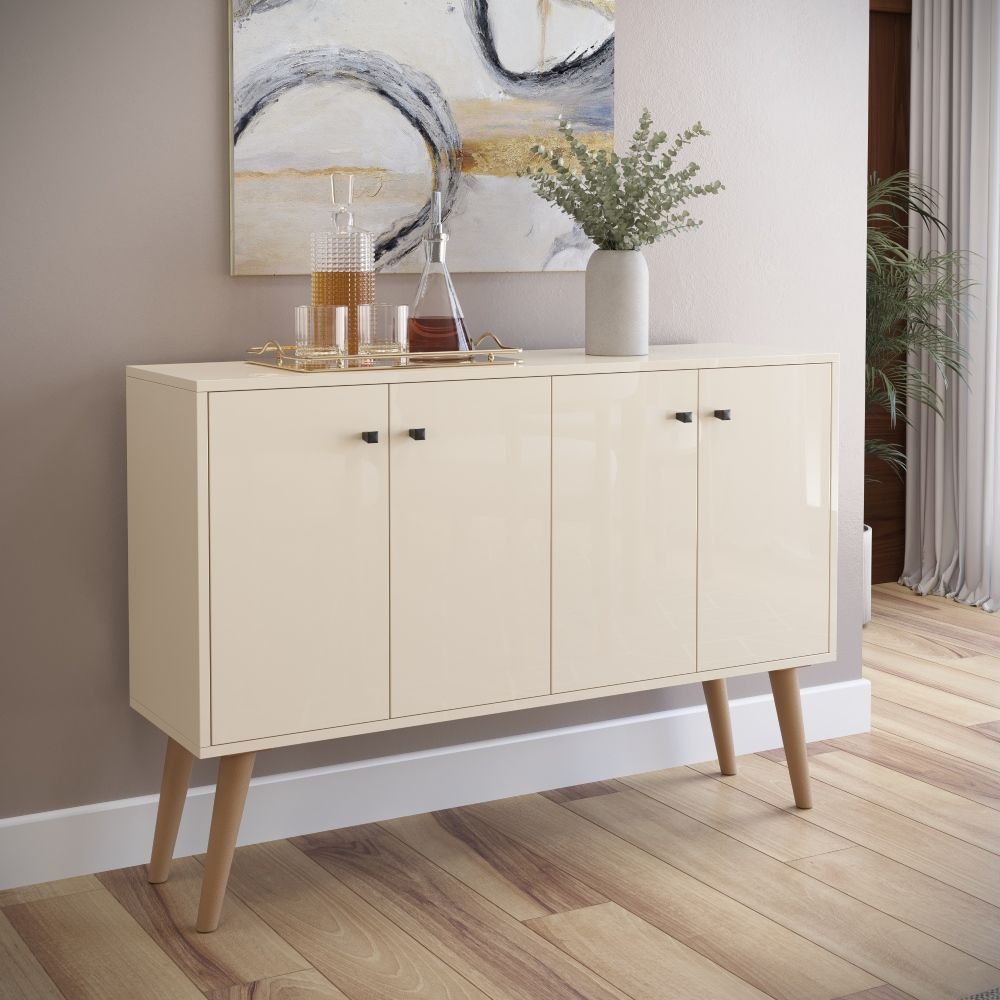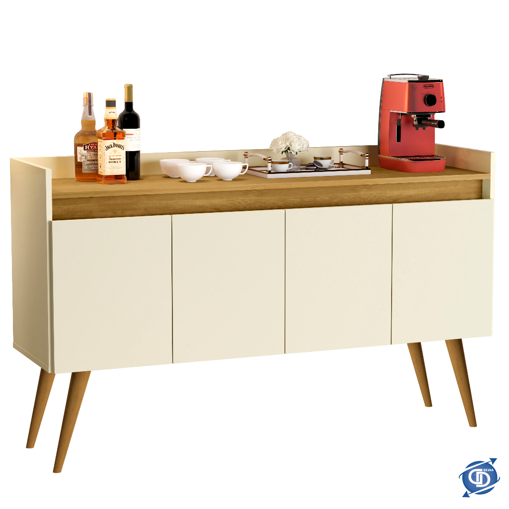 Buffet Aparador Imperial 4 Portas com Pés Palito Retrô - Off White