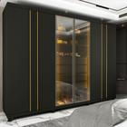 Guarda Roupa de Casal Gelius Innova com 250 cm de Largura 6 portas com 6 portas de vidro reflecta 4 gavetas com pés e LED Preto Acetinado - Preto