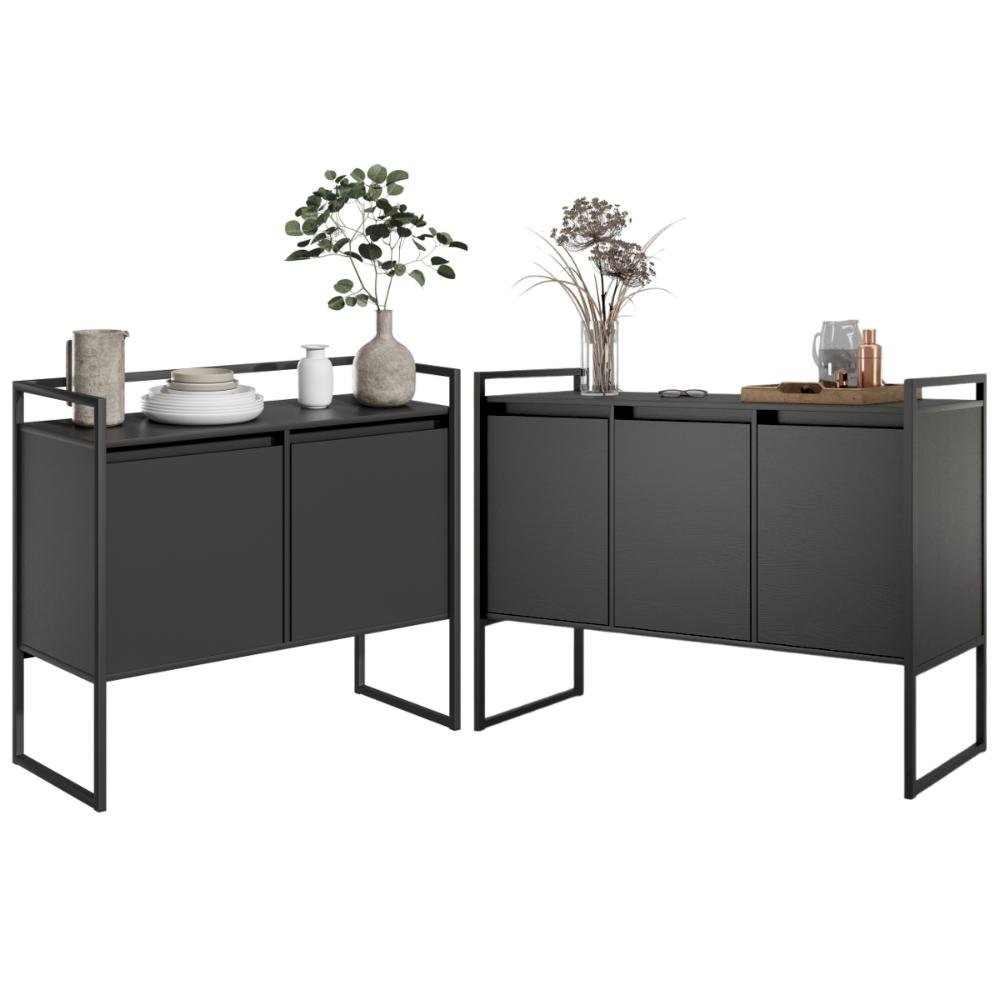 Conjunto Aparador Industrial 2 e 3 Portas Preto