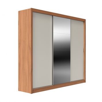 Guarda-Roupa Casal Móveis Europa Braga Flex com Espelho, 3 Portas de Correr e 6 Gavetas