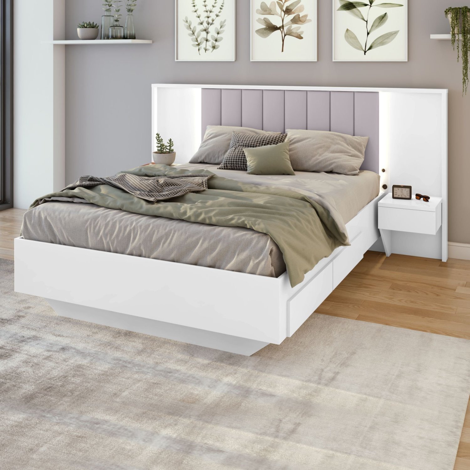 Cama Casal 140cm com Usb, Usb-c 2 Mesa de Cabeceiras Solaris