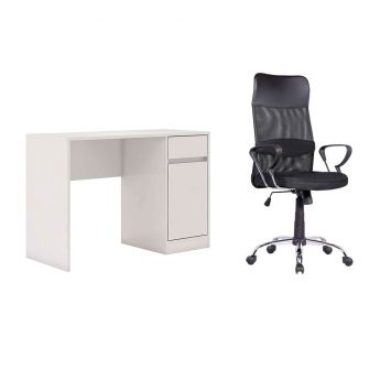 Conjunto de Mesa Anah Freijó e Preta com Cadeira de Escritório Secretária Giratória Marilyn Branca