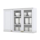 Armário Aéreo 3 Portas com Vidro 120 cm Americana Branco HP Henn