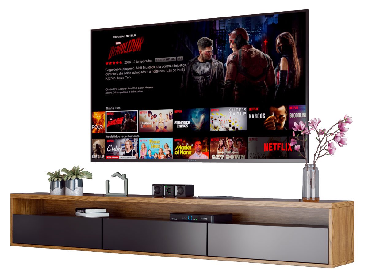 Rack Suspenso para TV Life 1.8 Preto Acetinado - MóveisAqui